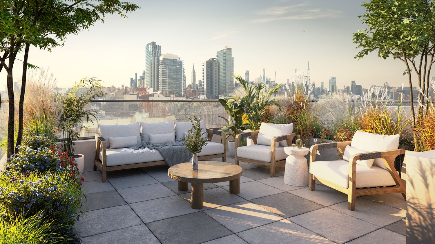 One duplex and three triplex apartments, along with spacious penthouses, studios, and one- and two- and four-bedroom apartments all come with a robust amenity package, providing a variety of lifestyle options for your selection. Views of the Manhattan skyline and the iconic Brooklyn Bridge, plus lush terraces and rooftop decks with private cabanas are just some of the reasons this address is special.